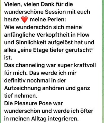 Das Ergebnis ist Dein innerer Frieden als erfüllte Frau. Tief verwurzelt in Deiner sinnlichen Lebenslust, Deiner wahrhaftigen Selbstmacht und Deiner energetischen und finanziellen Freiheit - im Privatleben und im Business.