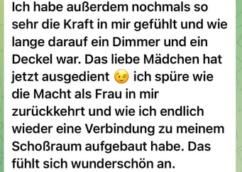 Das Ergebnis ist Dein Ganzsein mit allen Facetten deiner Vollblutfrau. Du lebst dich verwurzelt in Deiner Weiblichkeit, Deiner Selbstmacht und Deiner energetischen und finanziellen Freiheit. Im Privatleben im Liebesleben und im Business.