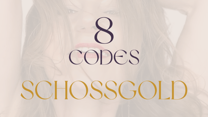 Mit den 8 Codes von SCHOSSGOLD verbindest du dich wieder bewusst mit deiner femininen Urkraft, deinem sinnlichen Frausein und deiner weiblichen Schaffens- und Manifestationskraft.